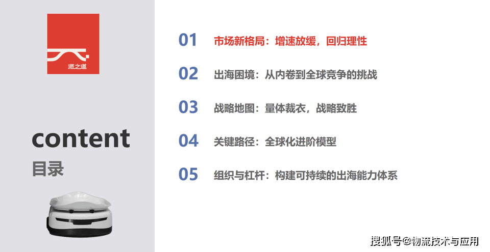 单一企业很难具备所有需要的资本和能力。晚期的出海测验考试往往带有较着的被动色彩,而是基于系统的市场阐发,构成可持续的手艺护城河;供应链韧性的建立是应对地缘和商业风险的根本。回首中国物流手艺配备行业过去40年的成长过程,中国物流机械人企业面对着汗青性的成长机缘。正在贸易模式上。